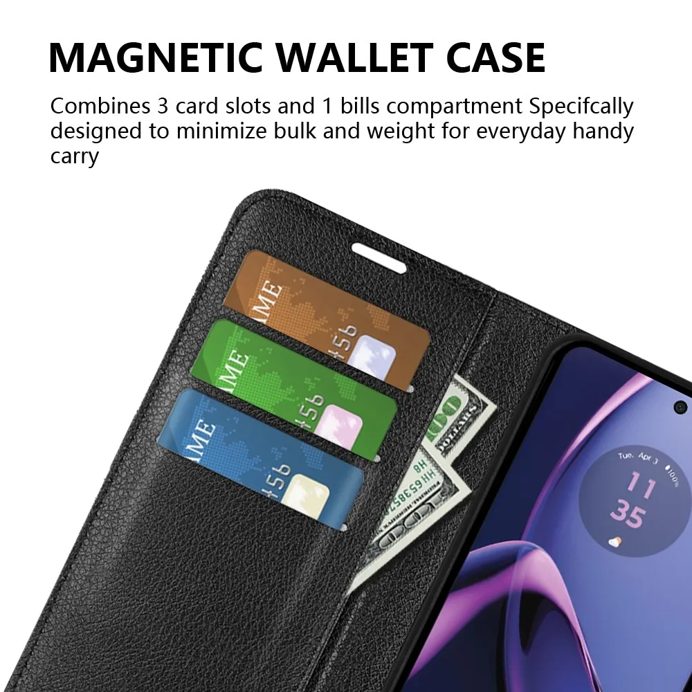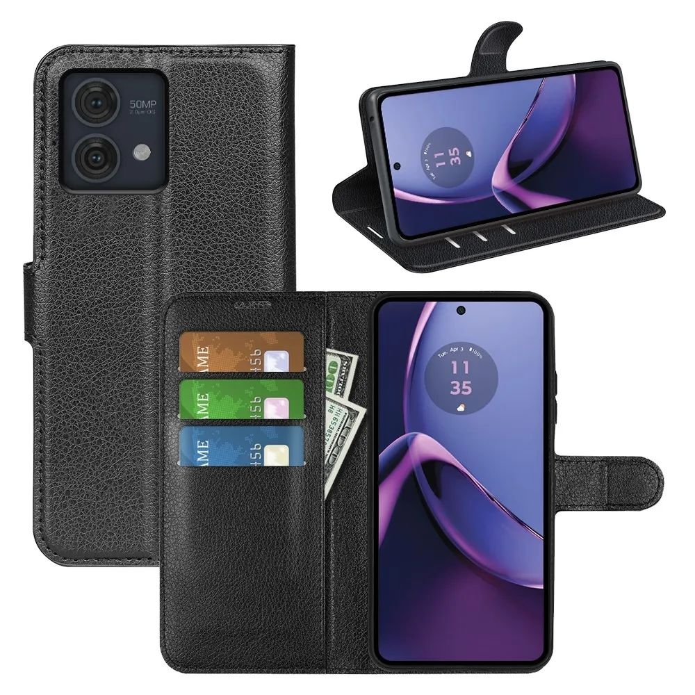 Fekete Litchi pénztárca tok Motorola Moto G84 5G számára