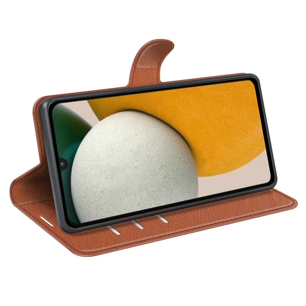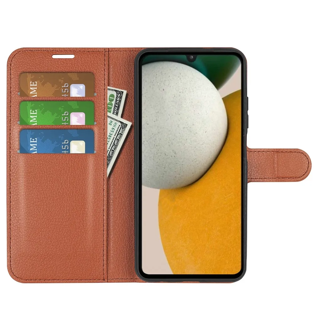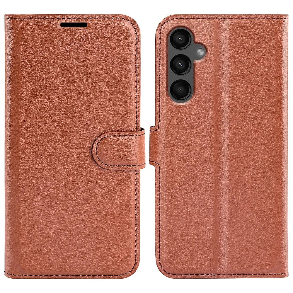 Barna Litchi pénztárca tok Samsung Galaxy A15 4G/5G számára