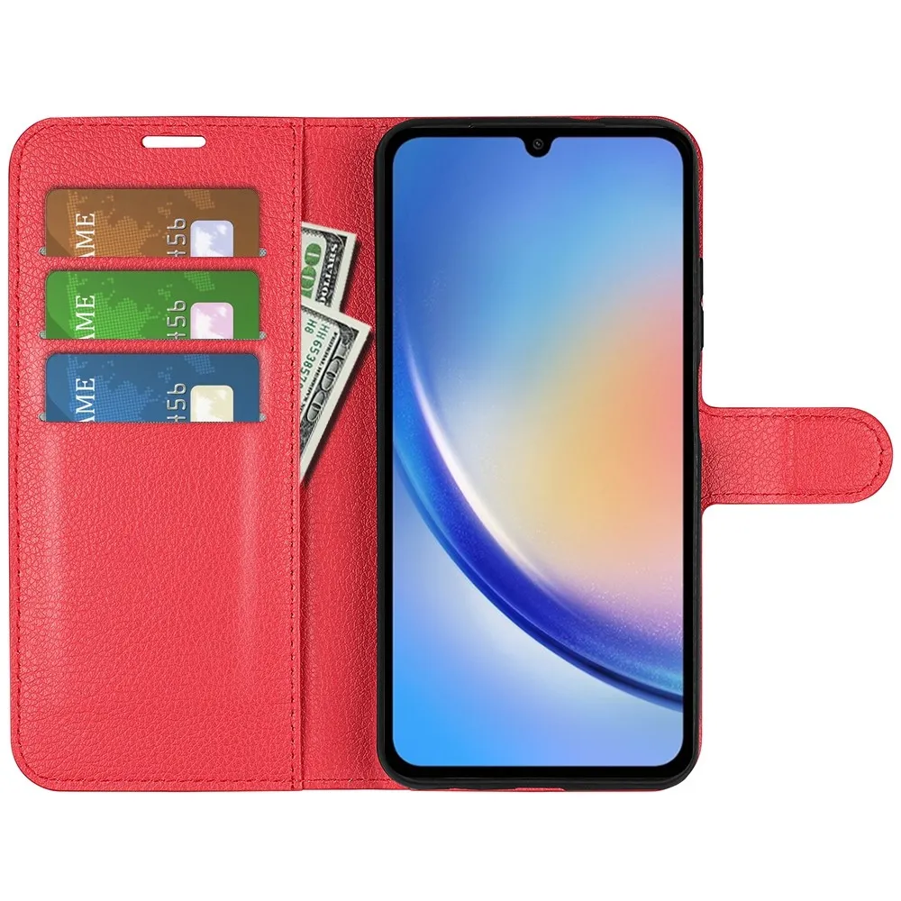 Piros Litchi pénztárca tok Samsung Galaxy A35 5G számára