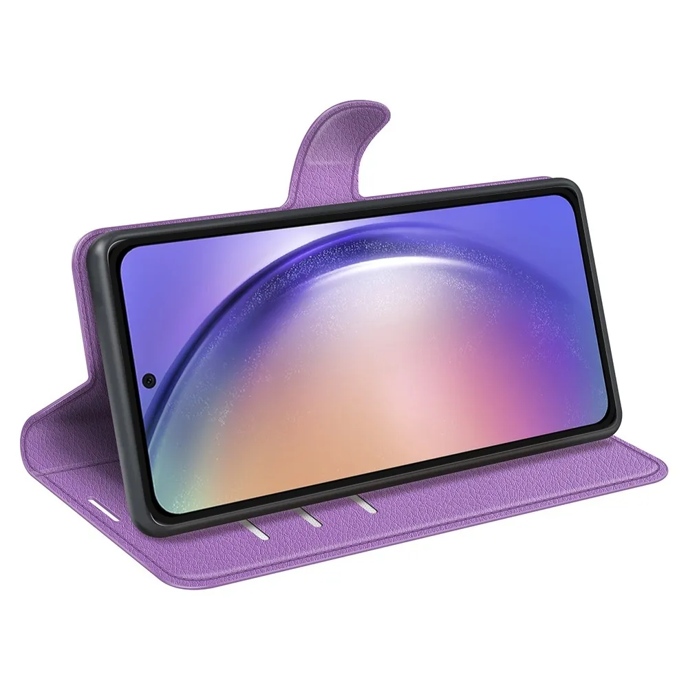 Lila Litchi pénztárca tok Samsung Galaxy A55 5G számára