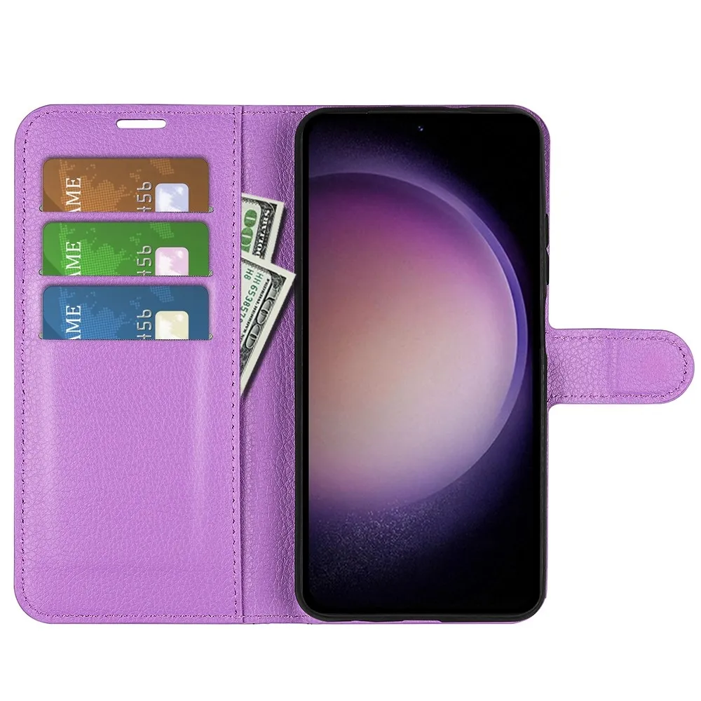 Lila Litchi pénztárca tok Samsung Galaxy S23 FE számára