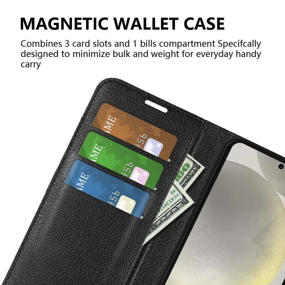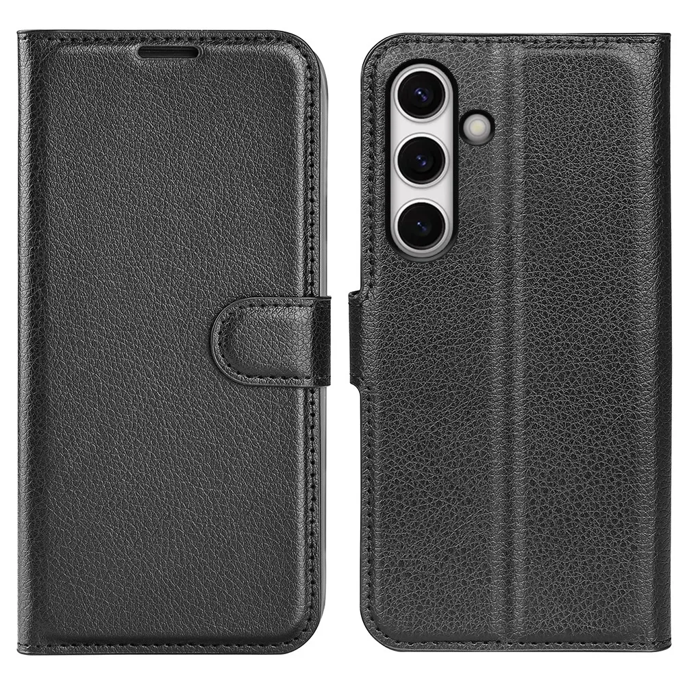 Fekete Litchi pénztárca tok Samsung Galaxy S24 FE számára