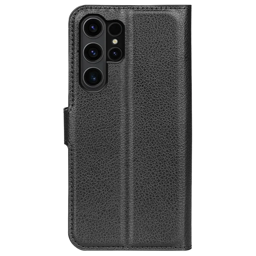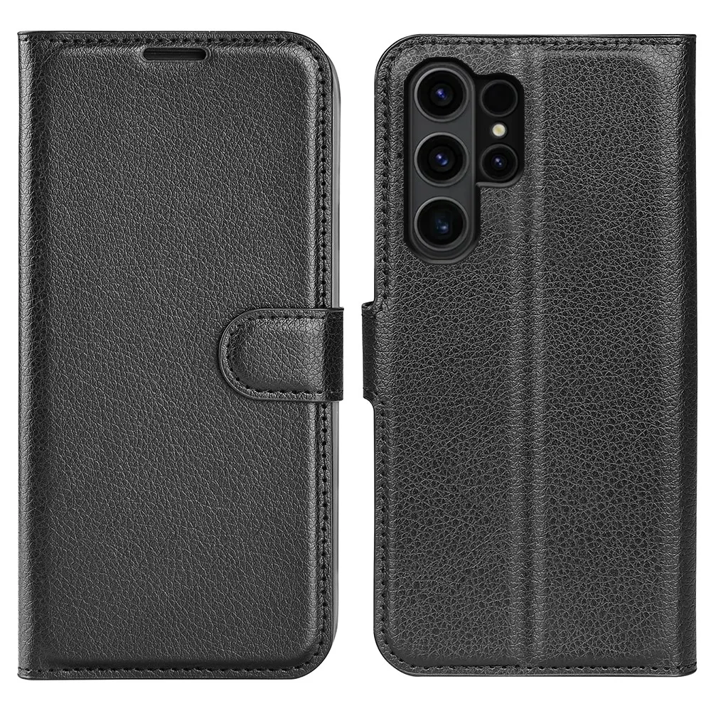 Fekete Litchi pénztárca tok Samsung Galaxy S24 Ultra számára