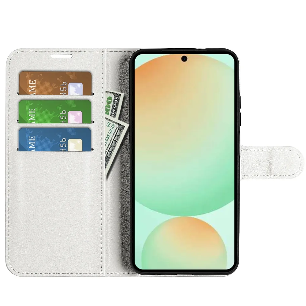 Fehér Litchi pénztárca tok Samsung Galaxy S25 FE számára
