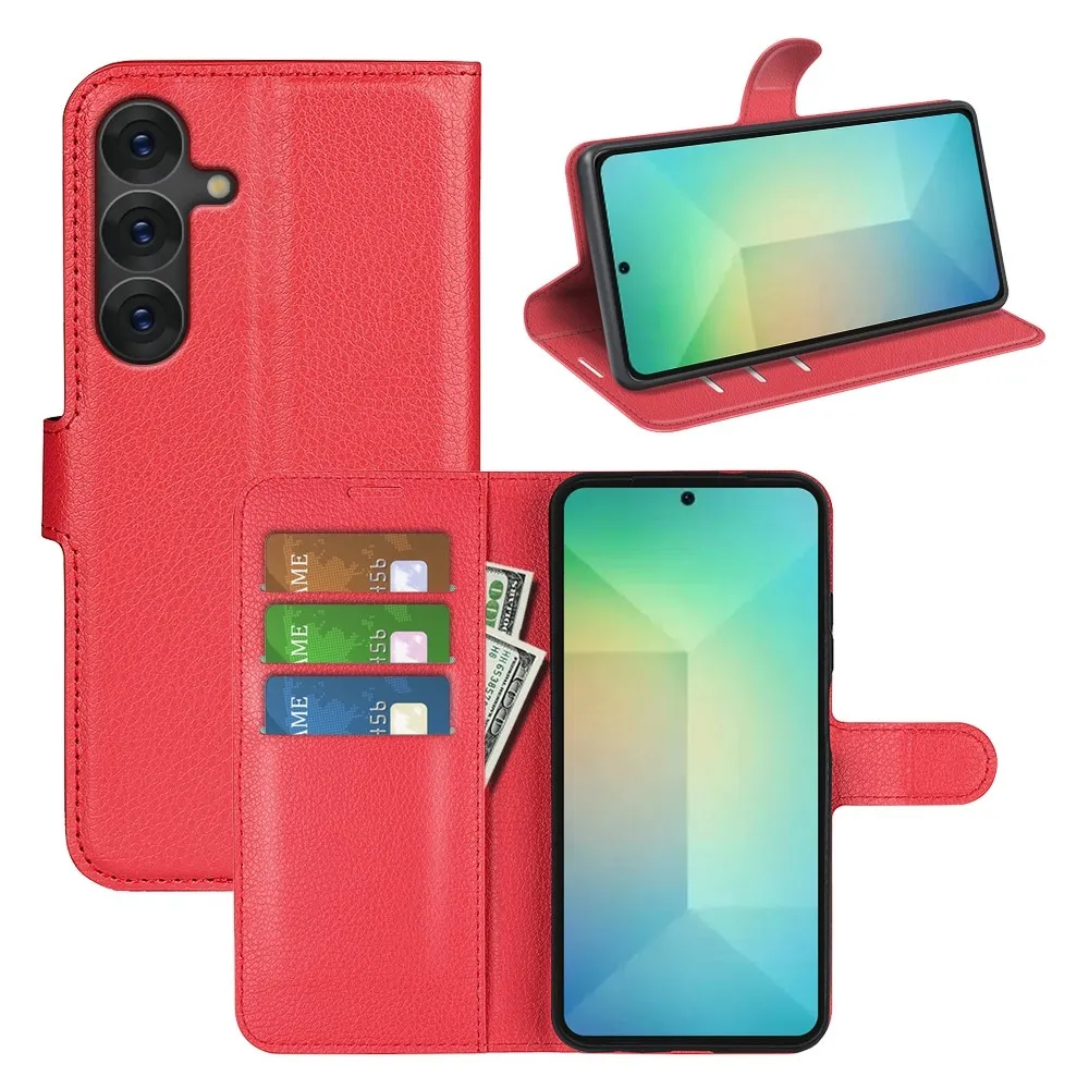 Piros Litchi pénztárca tok Samsung Galaxy S25-hez