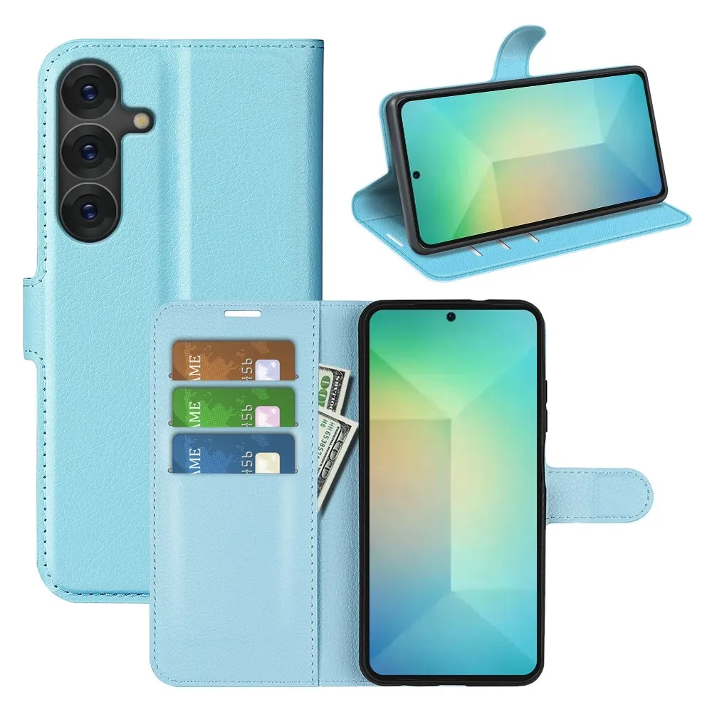 Kék Litchi pénztárca tok Samsung Galaxy S25-hez