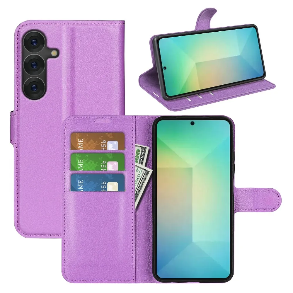 Lila Litchi pénztárca tok Samsung Galaxy S25-hez