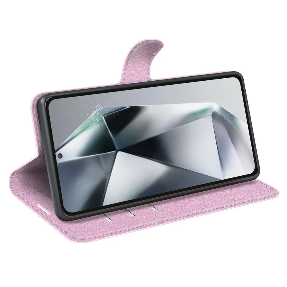 Rózsaszín Litchi pénztárca tok Samsung Galaxy S25 Ultra számára