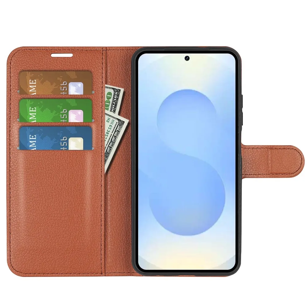Barna Litchi pénztárca tok Samsung Galaxy S26+ készülékhez