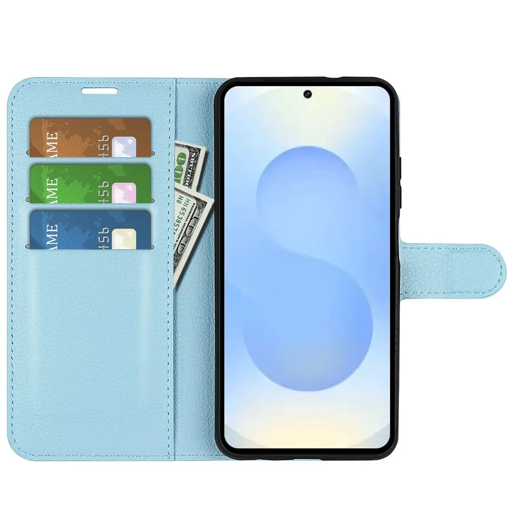 Kék Litchi pénztárca tok Samsung Galaxy S26+ készülékhez