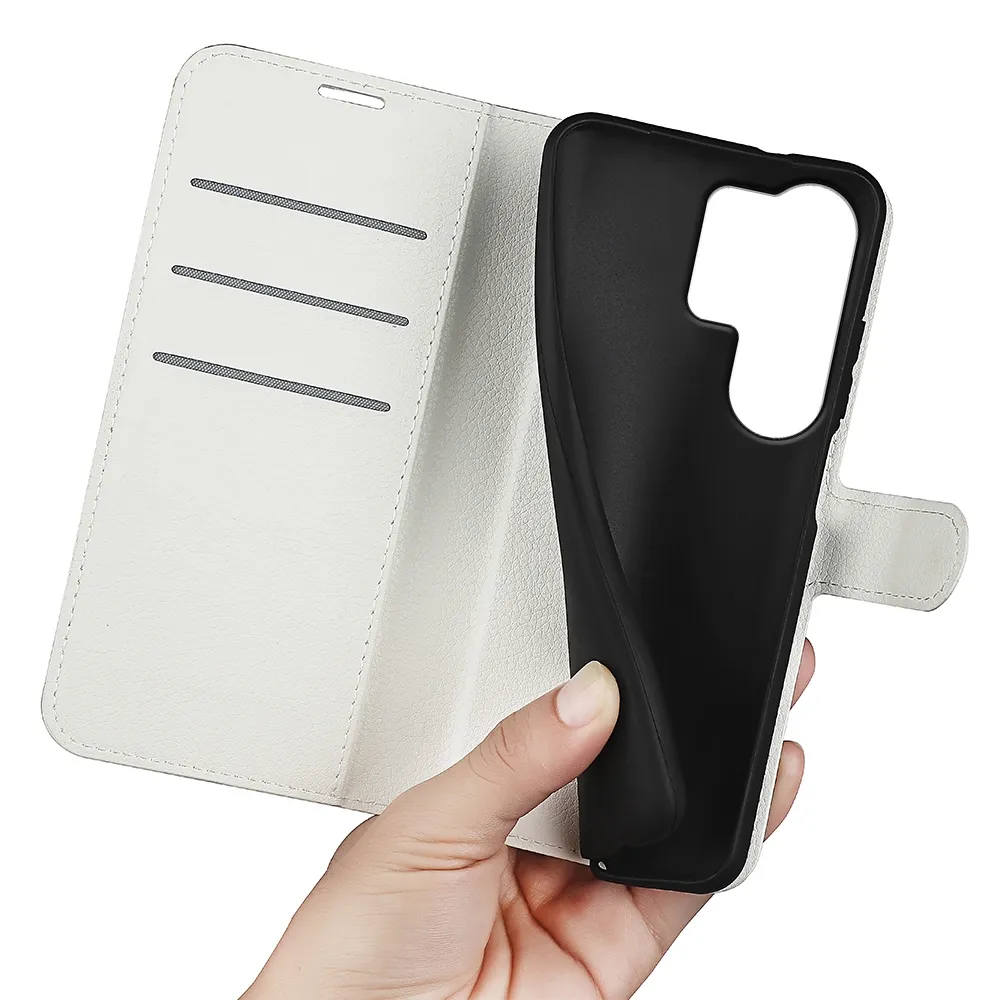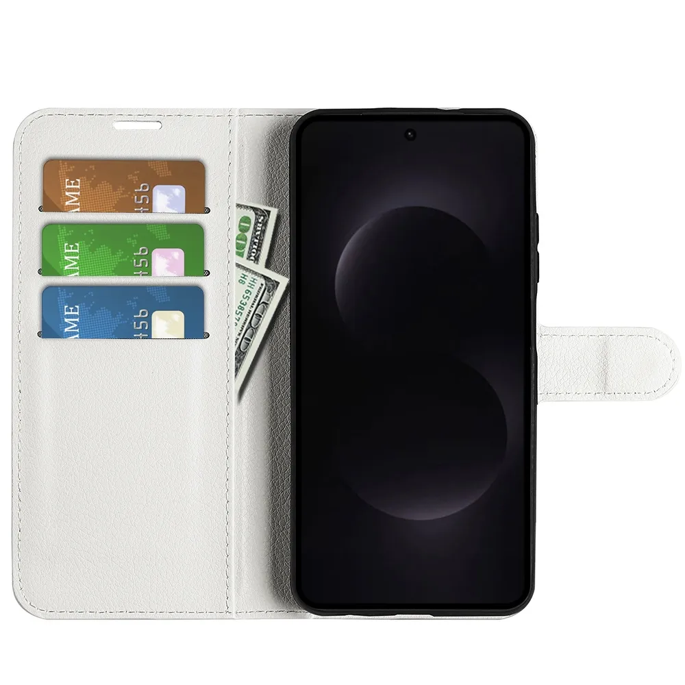 Fehér Litchi pénztárca tok Samsung Galaxy S26 Ultra számára