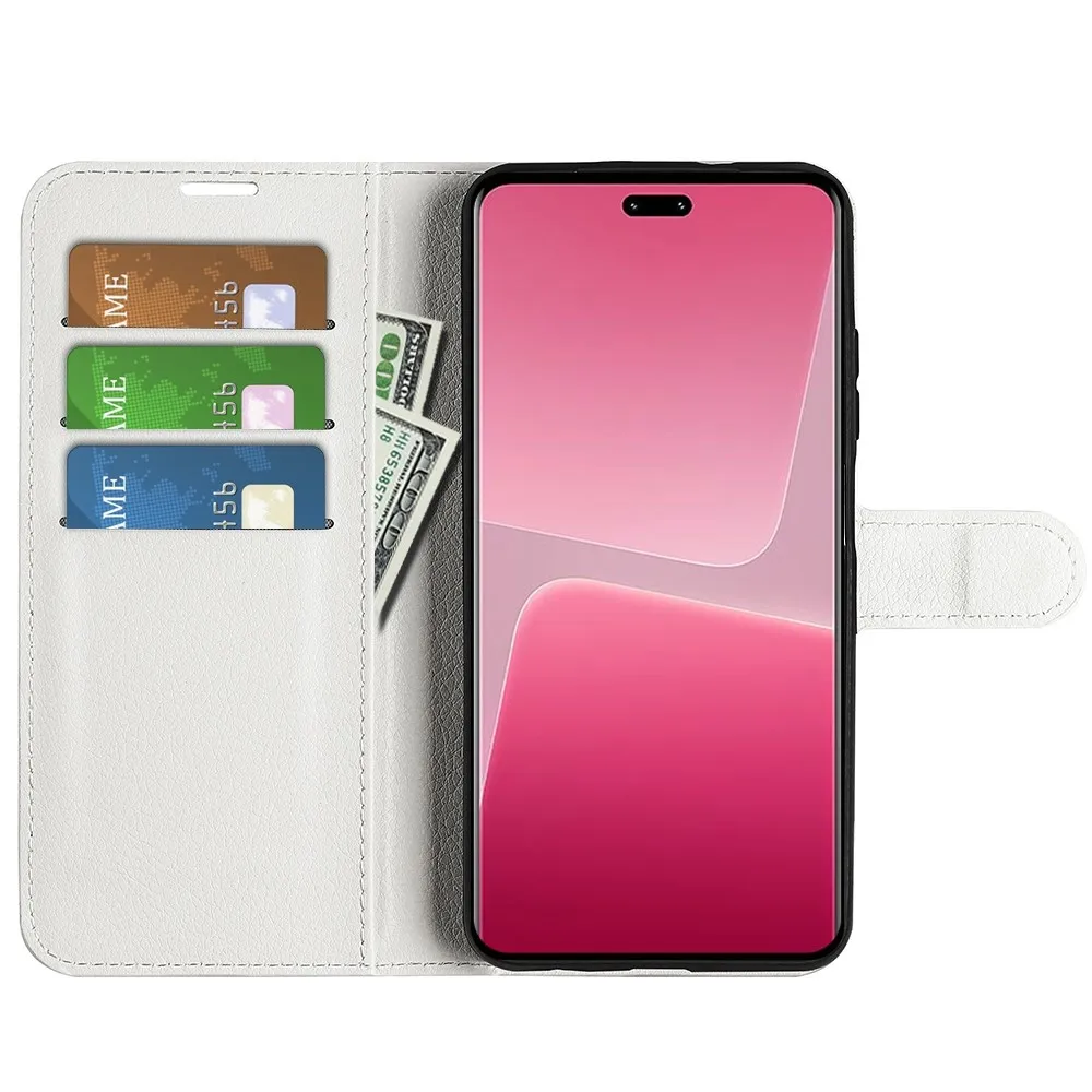 Fehér Litchi pénztárca tok a Xiaomi 13 Lite számára
