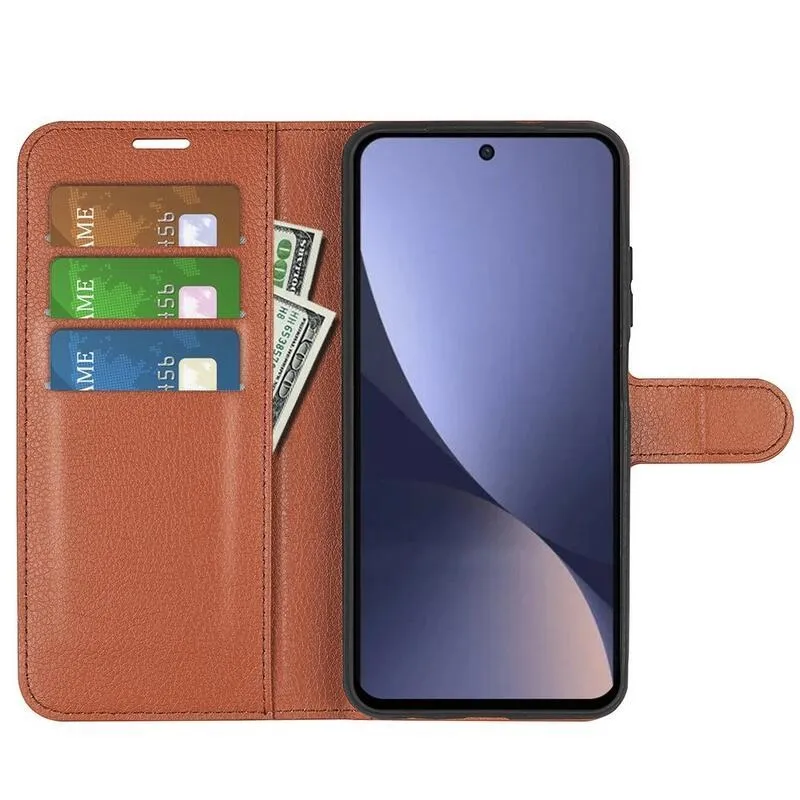 Litchi barna pénztárca tok Xiaomi 13 Pro számára