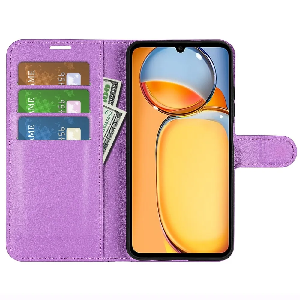 Lila pénztárca tok Litchi a Xiaomi Poco C65/Redmi 13C számára