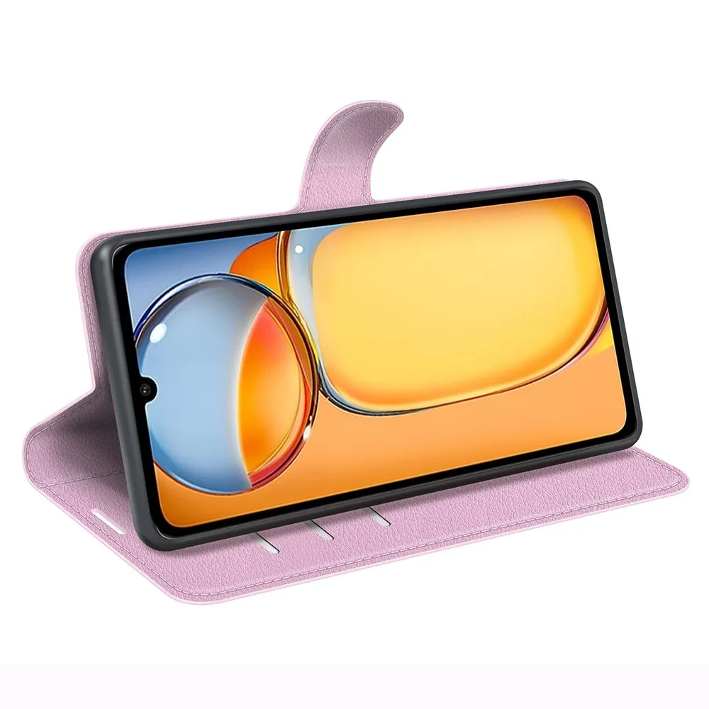 Rózsaszín pénztárca tok Litchi a Xiaomi Poco C65/Redmi 13C számára