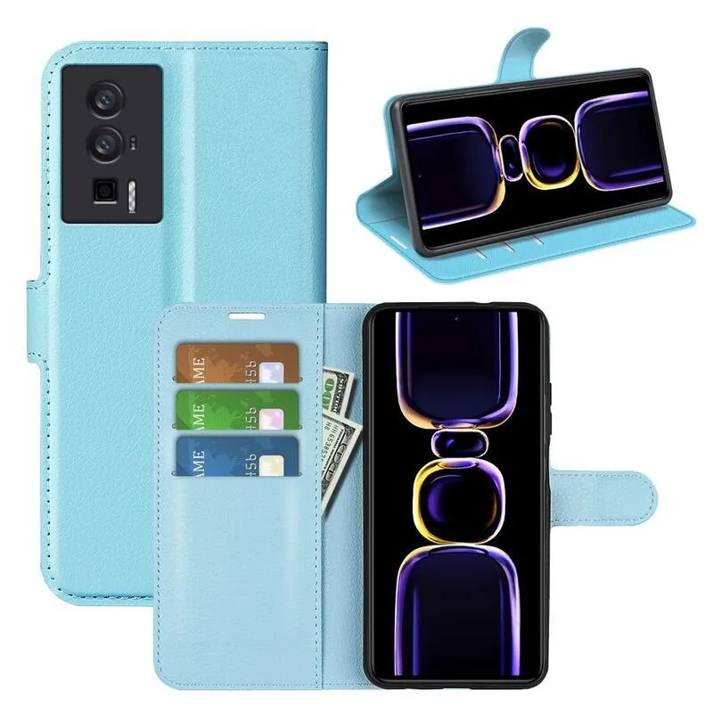 Litchi kék pénztárca tok a Xiaomi Poco F5 Pro számára