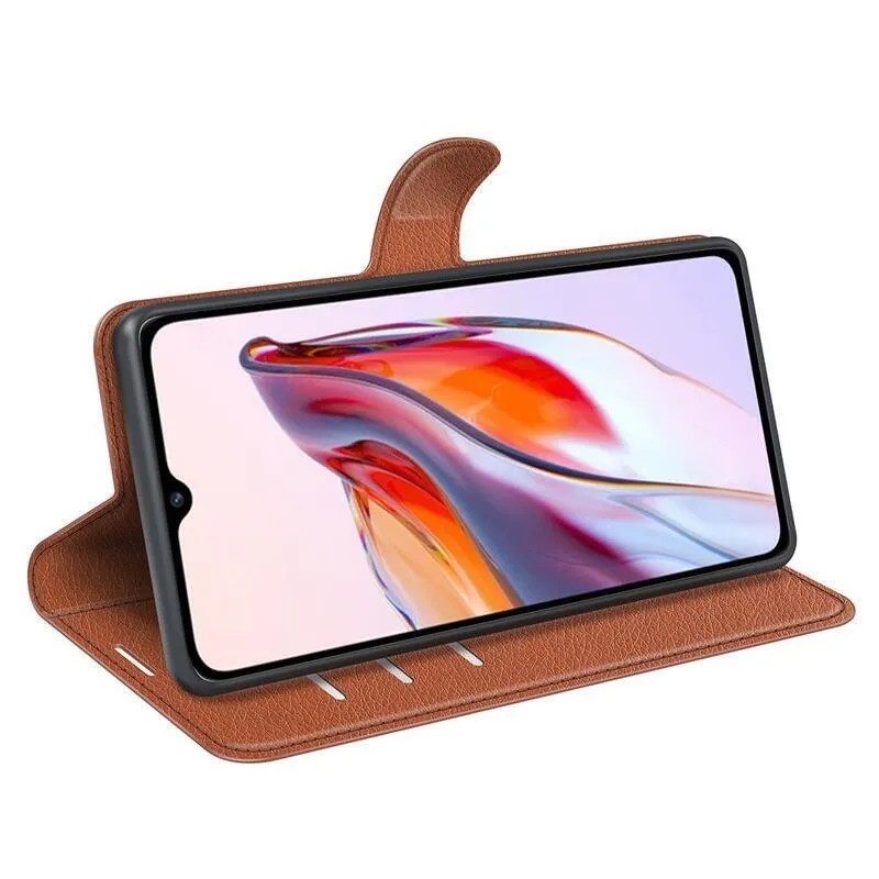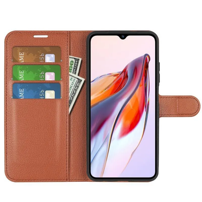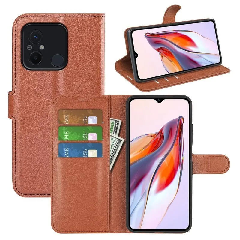 Litchi barna pénztárca tok Xiaomi Redmi 12C számára