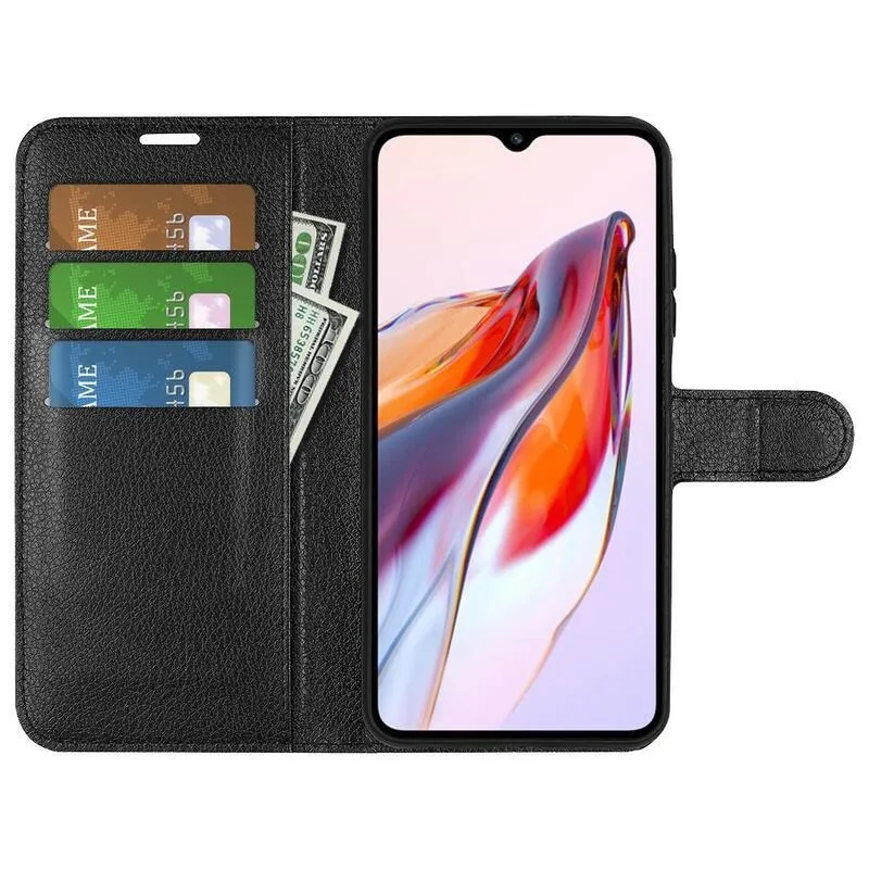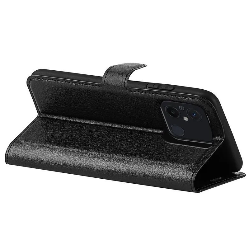 Litchi fekete pénztárca tok Xiaomi Redmi 12C számára