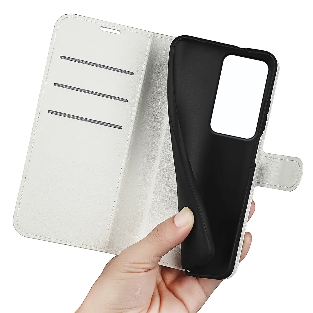 Fehér Litchi pénztárca tok a Xiaomi Redmi 15 4G/5G (171mm) számára