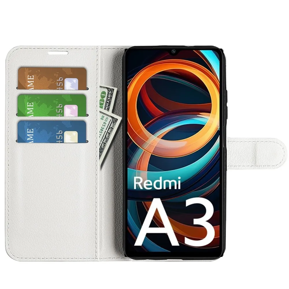 Fehér Litchi pénztárca tok a Xiaomi Redmi A3-hoz