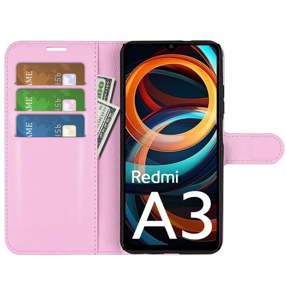 Rózsaszín Litchi pénztárca tok Xiaomi Redmi A3-hoz