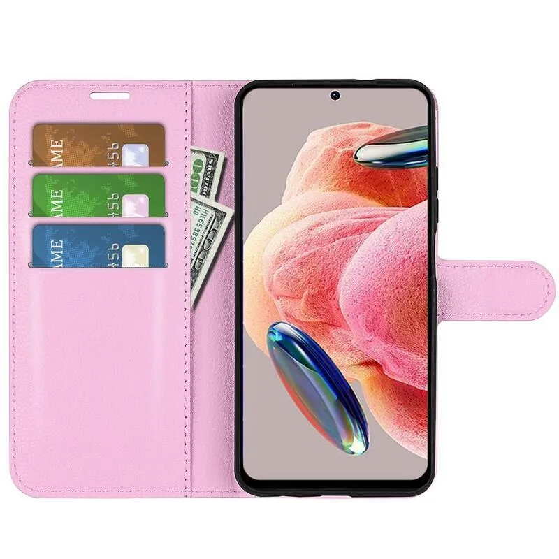 Litchi rózsaszín pénztárca tok a Xiaomi Redmi Note 12 4G-hez