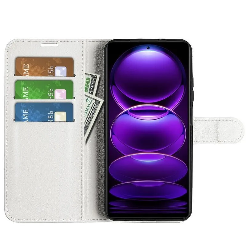 Litchi fehér pénztárca tok Xiaomi Redmi Note 12 Pro+ 5G számára