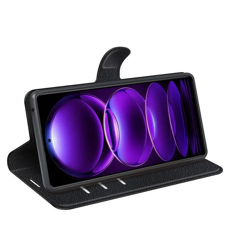 Litchi fekete pénztárca tok Xiaomi Redmi Note 12 Pro+ 5G számára