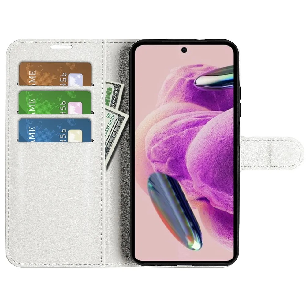 Fehér Litchi pénztárca tok Xiaomi Redmi Note 12S számára