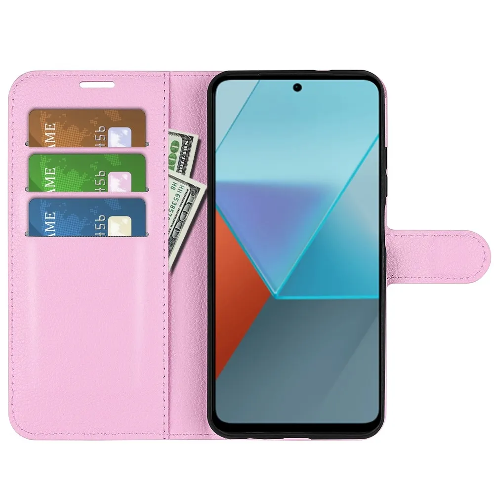 Rózsaszín Litchi pénztárca tok Xiaomi Redmi Note 13 Pro 5G/Poco X6 5G számára