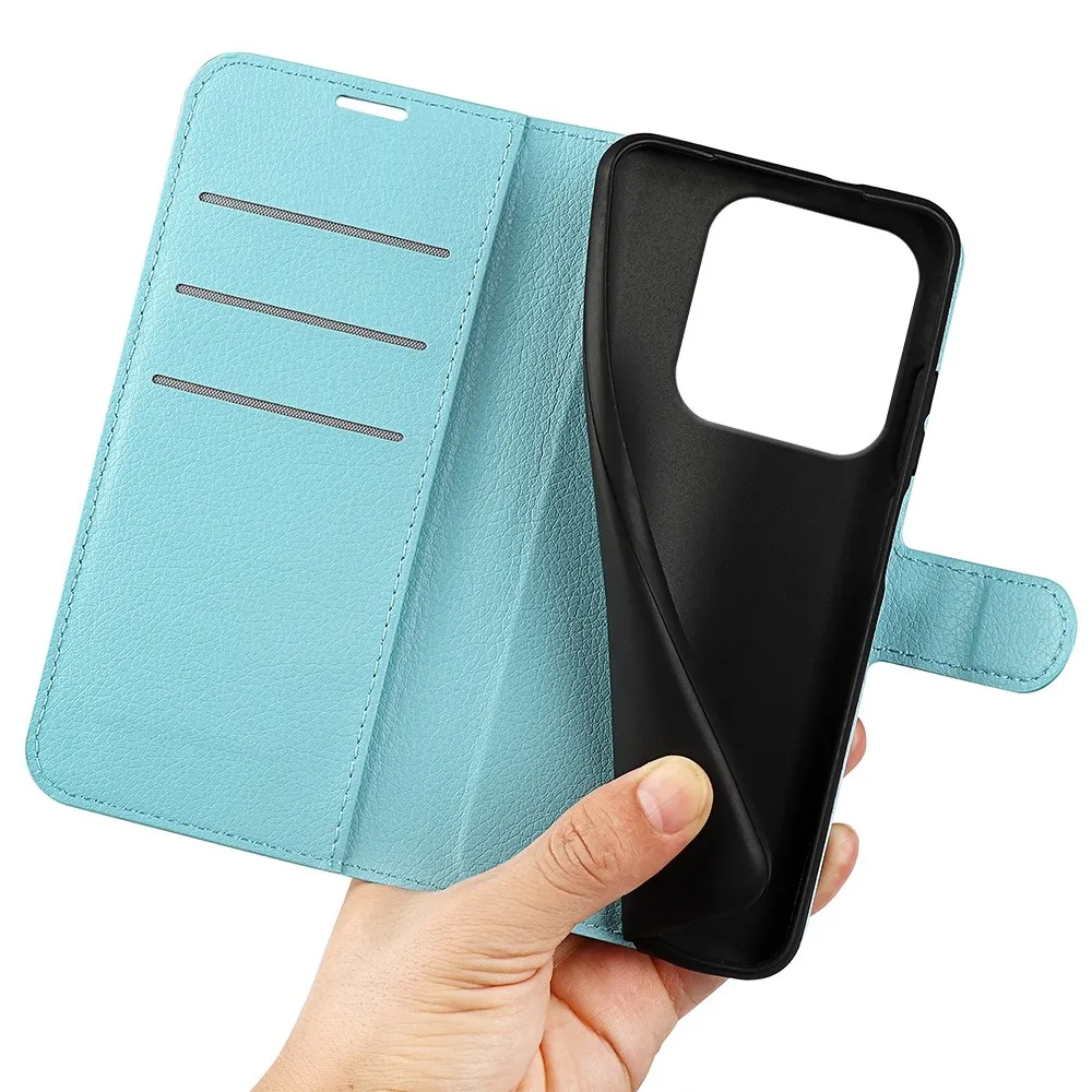 Kék Litchi pénztárca tok Xiaomi Redmi Note 14 5G számára