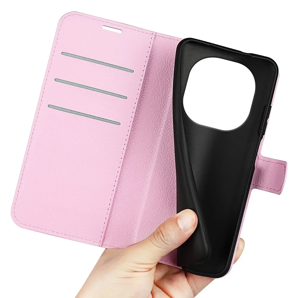 Rózsaszín Litchi pénztárca tok Xiaomi Redmi Note 14 Pro 5G/Poco X7 5G számára