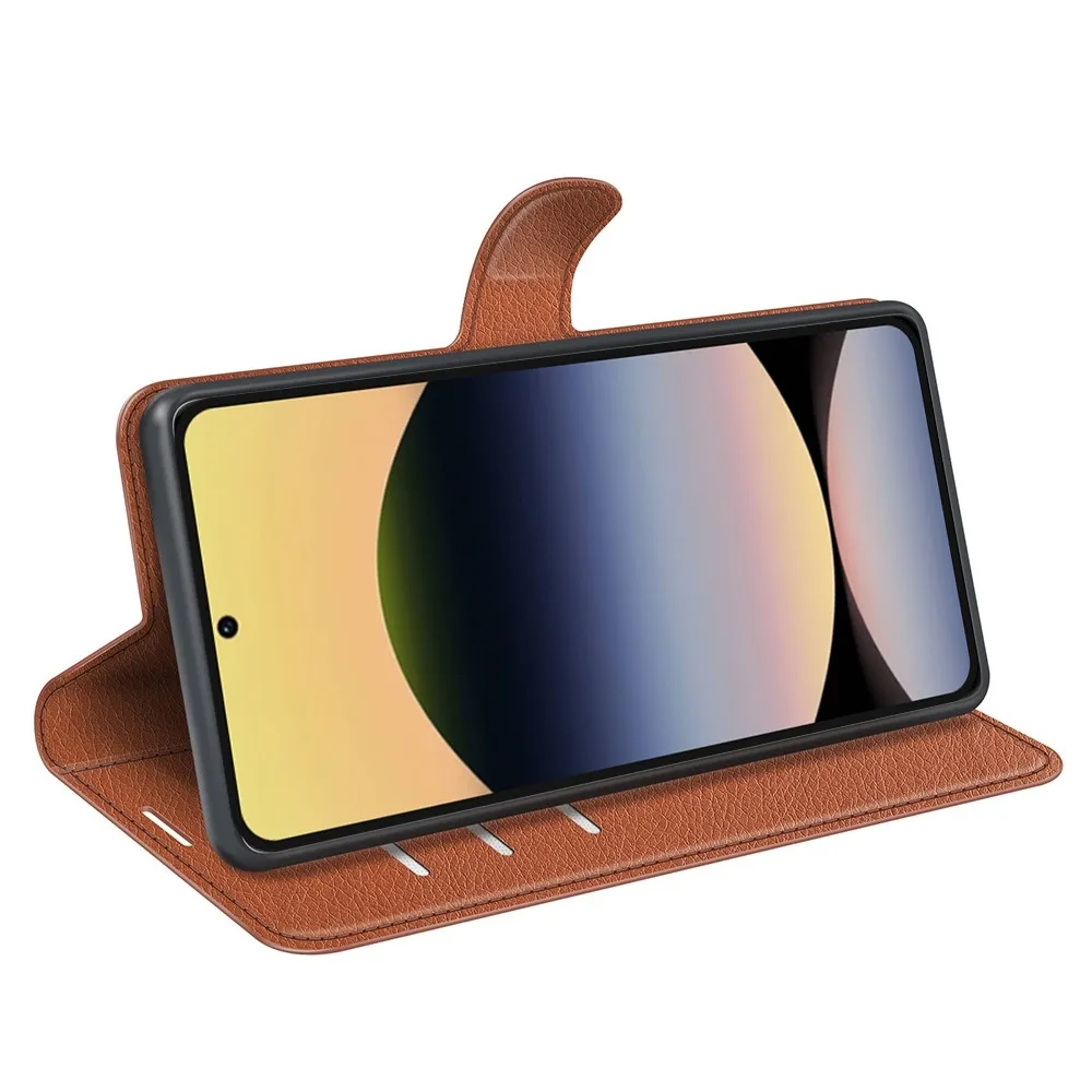 Barna Litchi pénztárca tok Xiaomi Redmi Note 14S számára