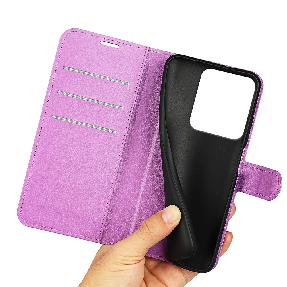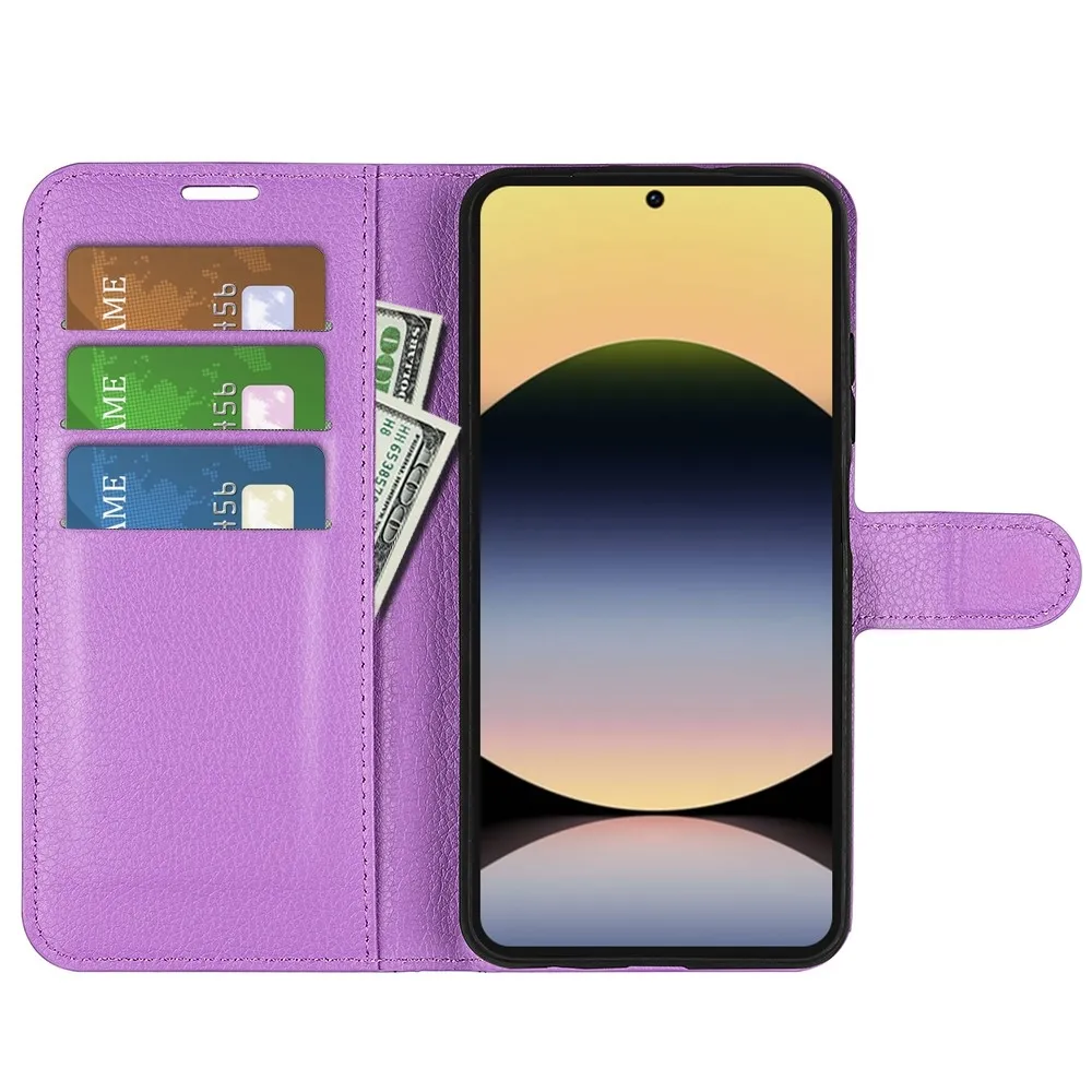 Lila Litchi pénztárca tok Xiaomi Redmi Note 14S számára