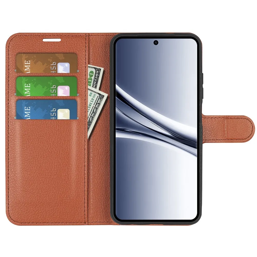 Litchi könyv tok Xiaomi Redmi Note 15 4G-hez - barna