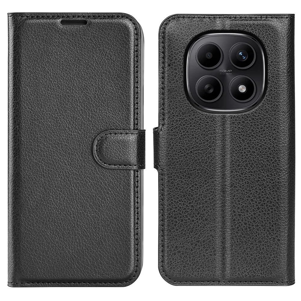 Litchi könyv tok Xiaomi Redmi Note 15 4G-hez - fekete