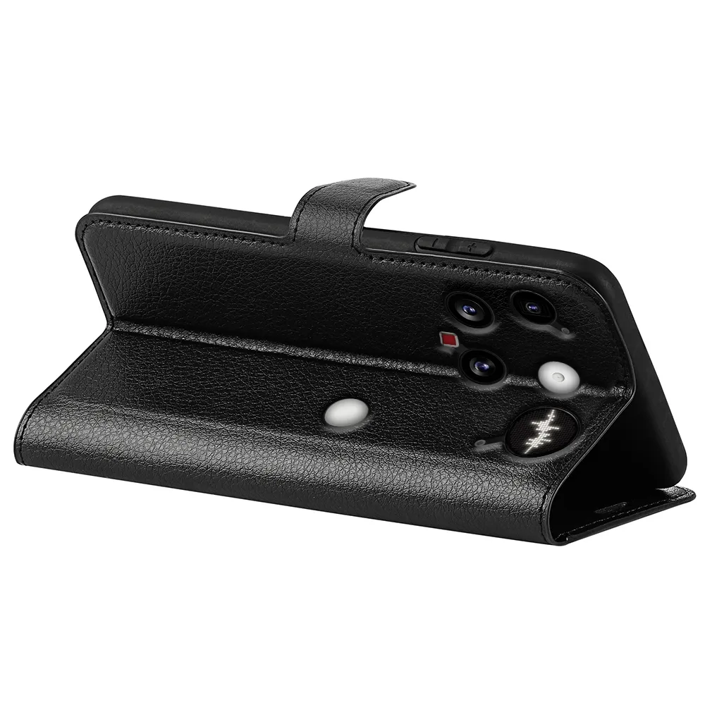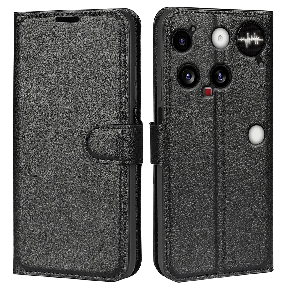 Litchi könyvtáska a Nothing Phone (3) 5G telefonhoz - fekete