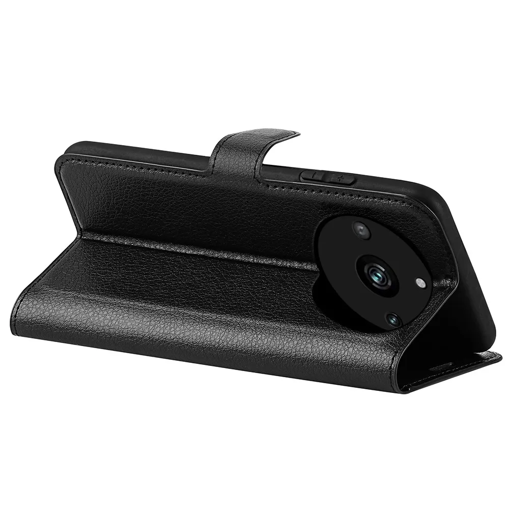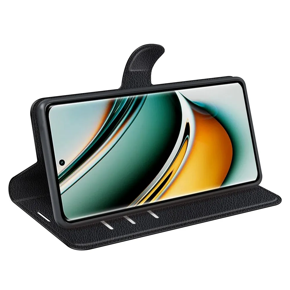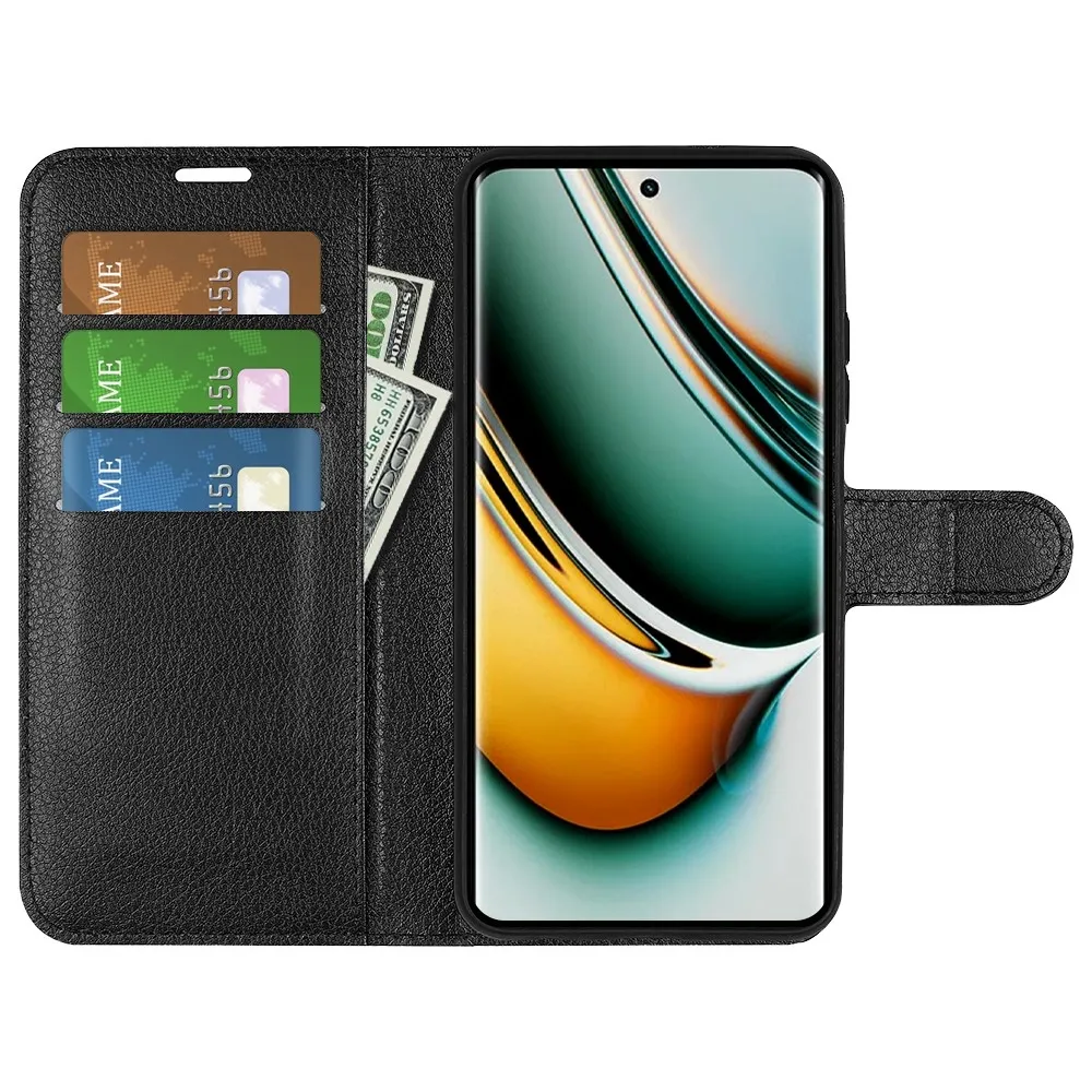 Fekete Litchi pénztárca tok a Realme 11 Pro 5G/11 Pro+ 5G számára
