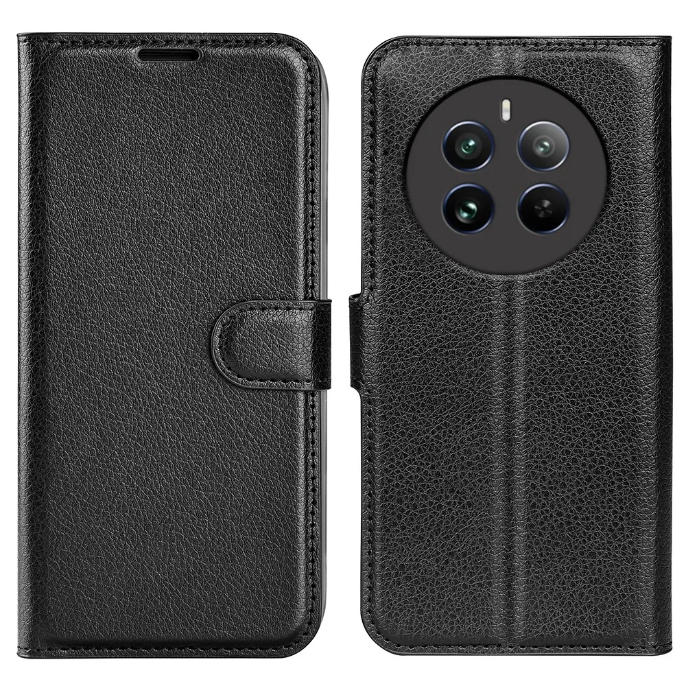 Fekete Litchi pénztárca tok a Realme 12+ 5G számára