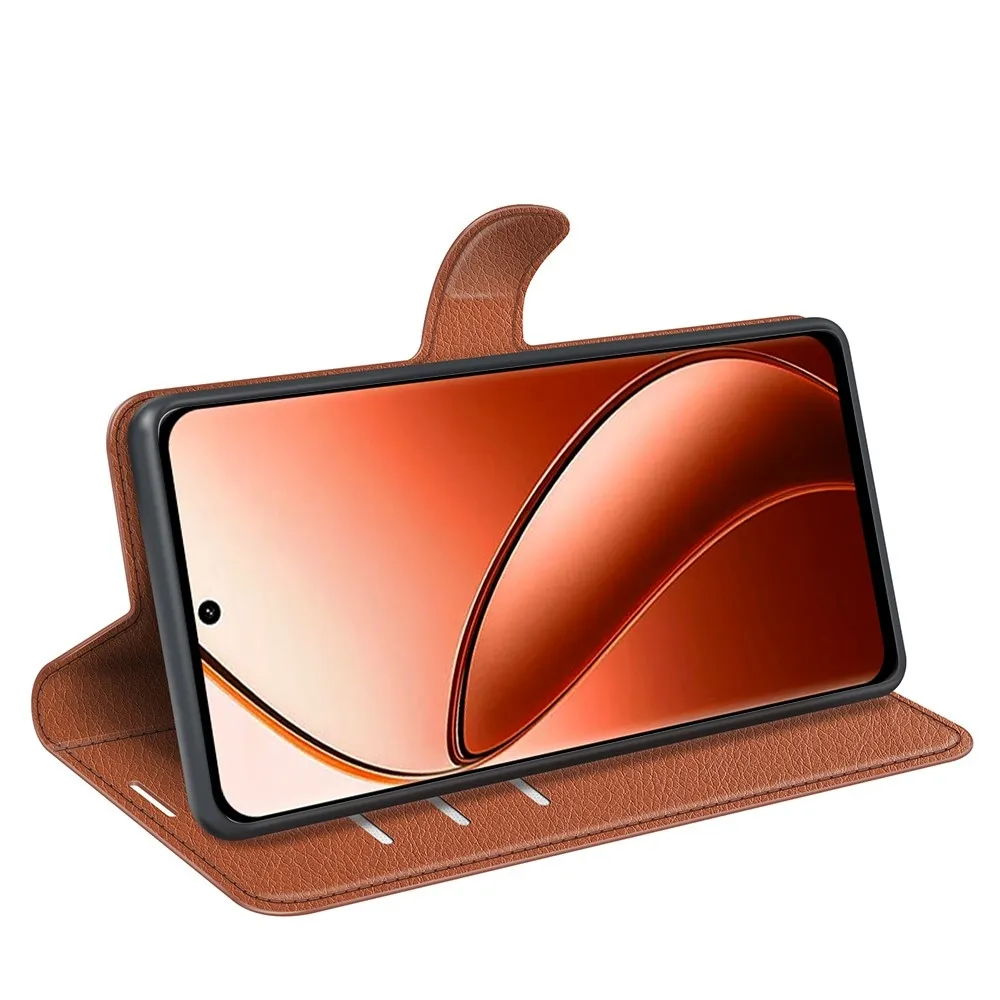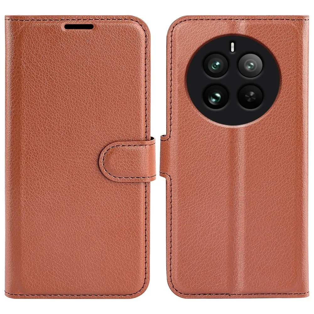 Barna Litchi pénztárca tok a Realme 12 Pro 5G/12 Pro+ 5G számára