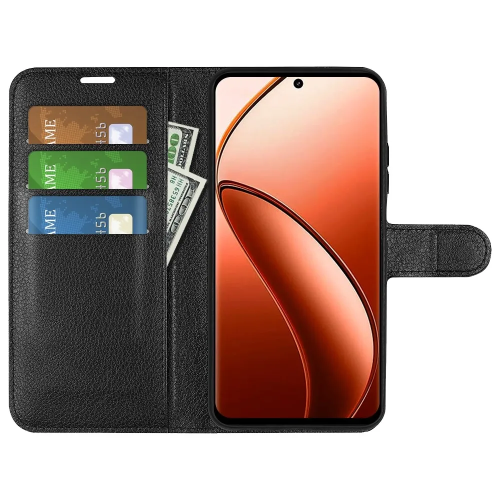 Fekete Litchi pénztárca tok a Realme 12 Pro 5G/12 Pro+ 5G számára