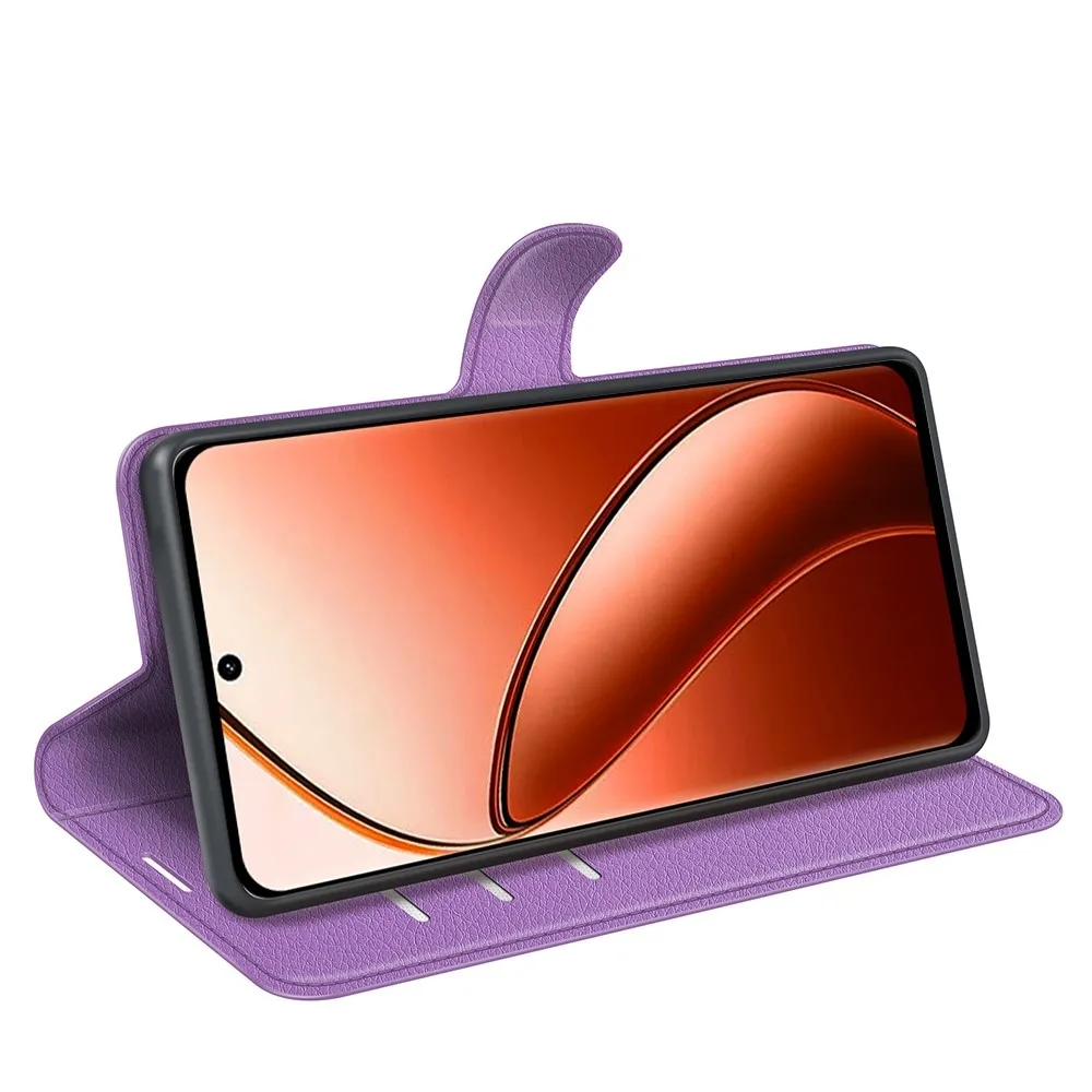 Lila Litchi pénztárca tok a Realme 12 Pro 5G/12 Pro+ 5G számára