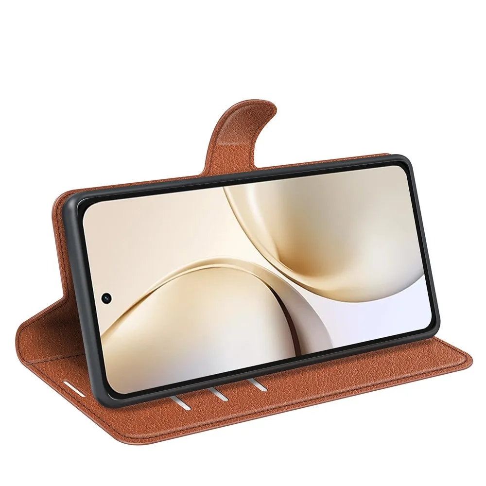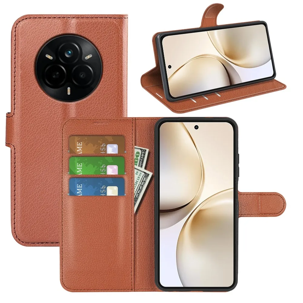 Barna Litchi pénztárca tok a Realme 14 Pro+ 5G számára