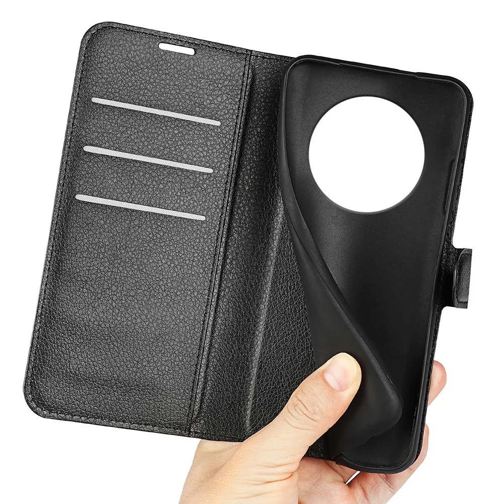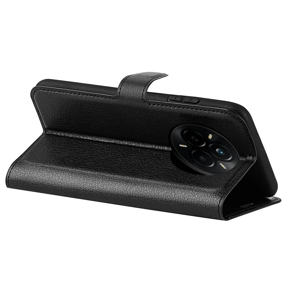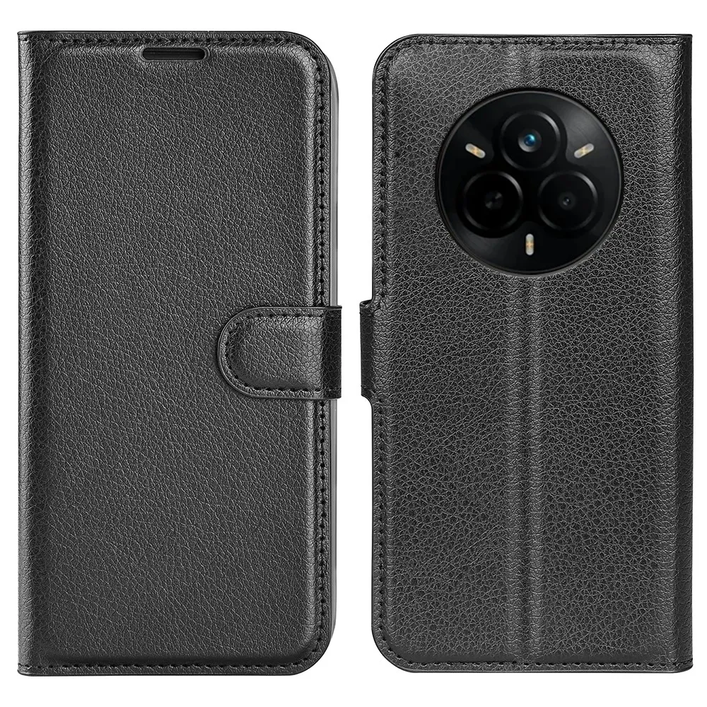 Fekete Litchi pénztárca tok a Realme 14 Pro 5G számára