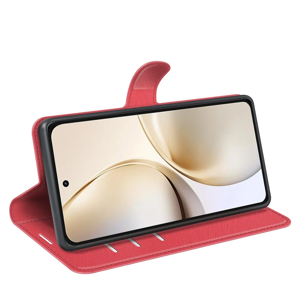 Litchi könyvtáska a Realme 14 Pro+ 5G készülékhez - piros