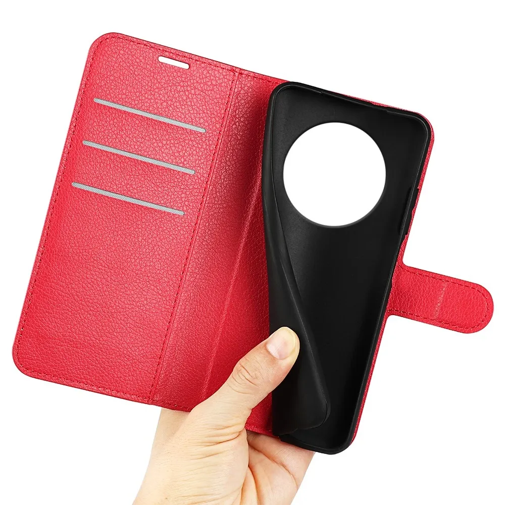 Piros Litchi pénztárca tok a Realme 14 Pro+ 5G számára