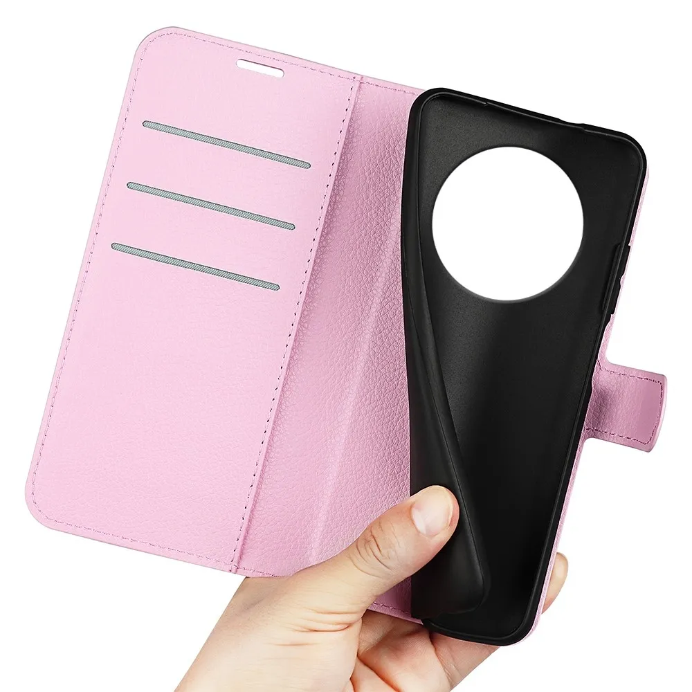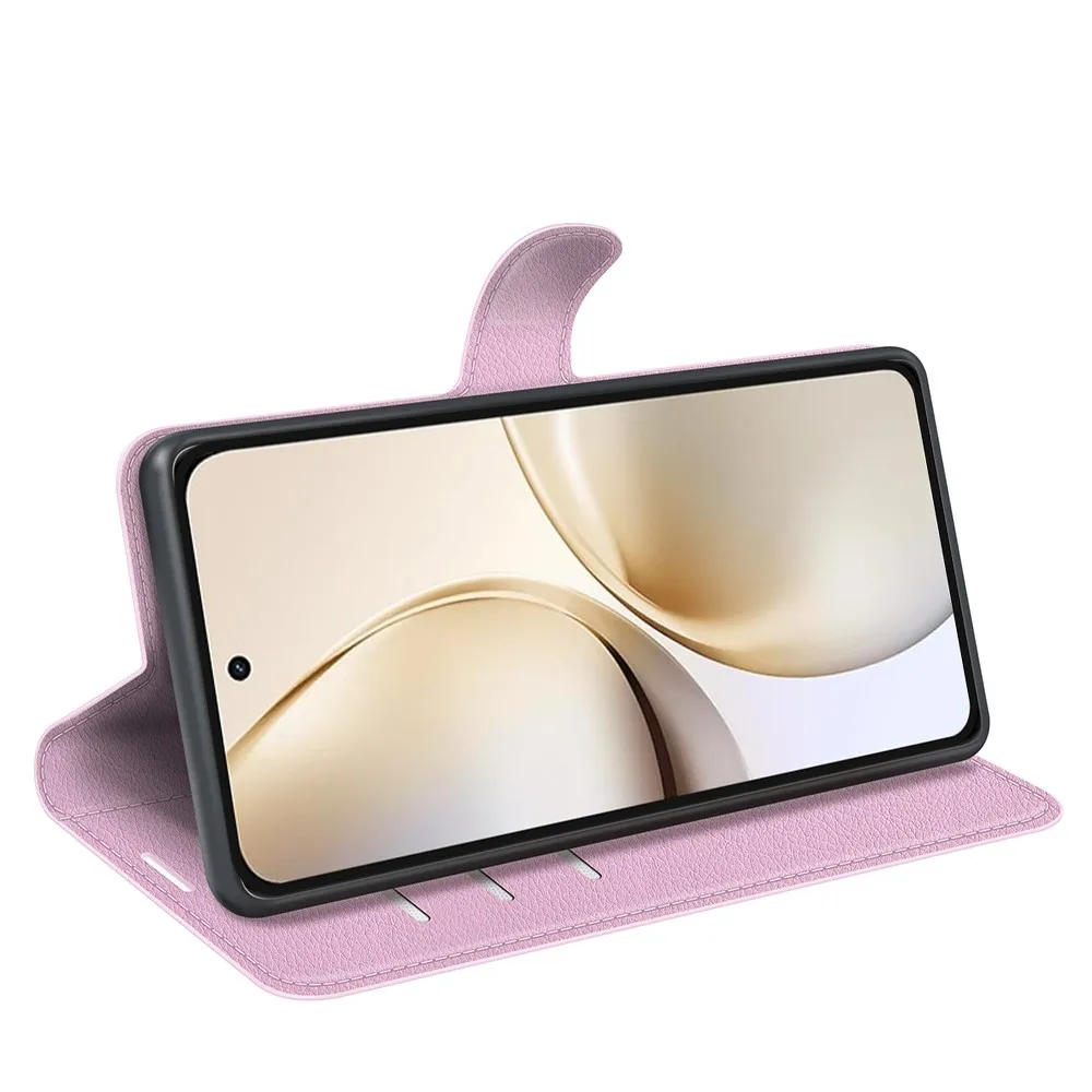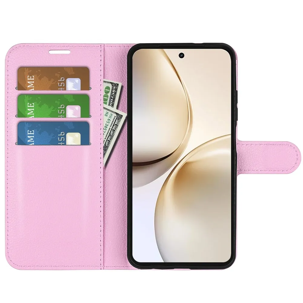 Rózsaszín Litchi pénztárca tok a Realme 14 Pro+ 5G számára