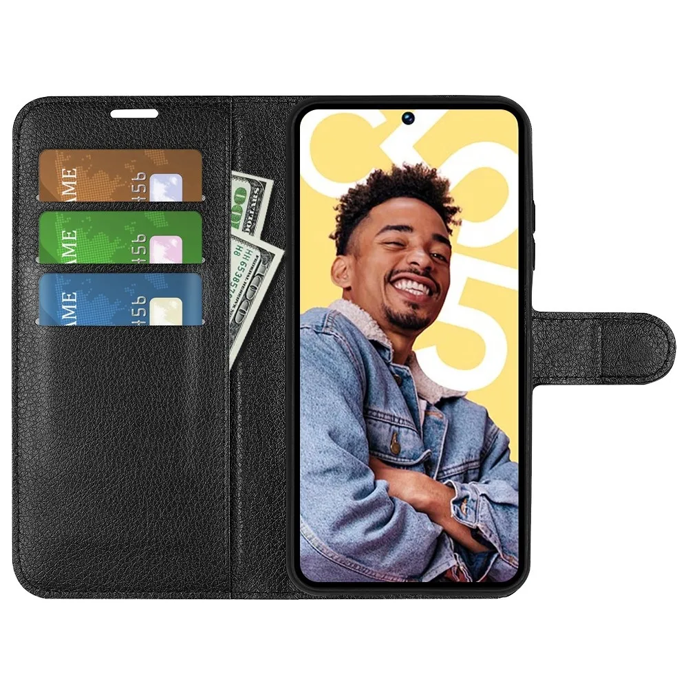 Fekete Litchi pénztárca tok a Realme C55-hez