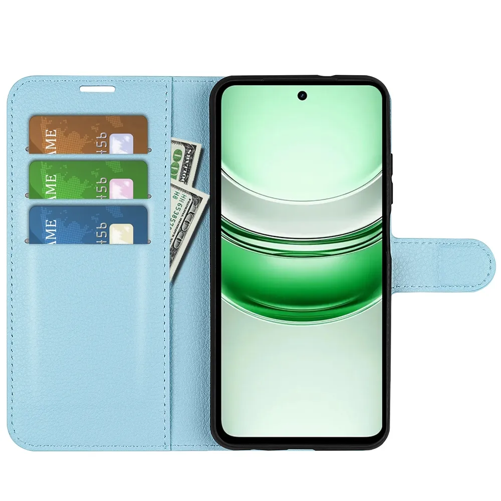 Kék Litchi pénztárca tok Realme C71 mobiltelefonhoz
