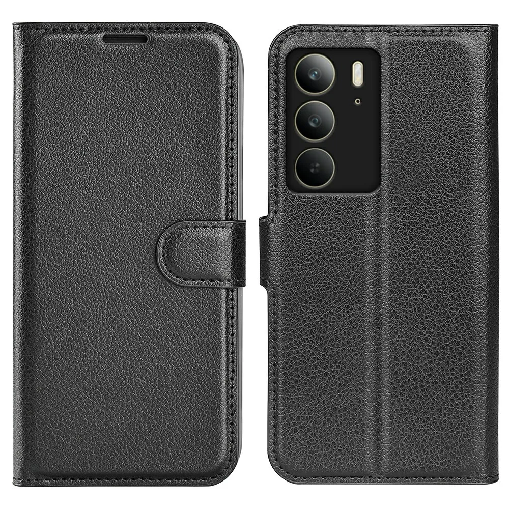 Fekete Litchi pénztárca tok a Realme C75 mobiltelefonhoz